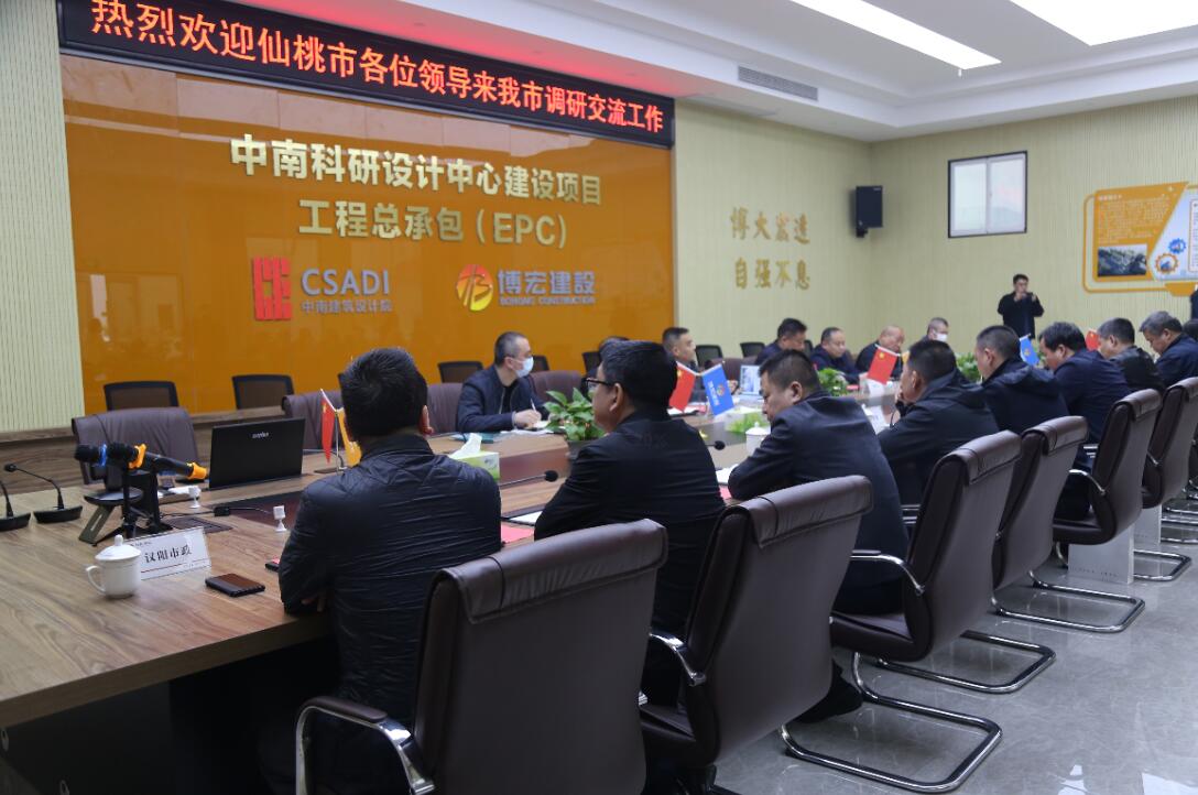 榮先國對仙桃市各位領導到來表示熱烈歡迎,會上武漢市城建局下屬部門負責人就武漢市房屋市政工程安全文明施工管理、武漢市扶持建筑業發展工作、武漢市消防設計審驗工作、武漢市推廣裝配式建筑工作、漢陽區建設工地安全文明施工管理信息化系統建設使用等情況進行詳細了介紹。