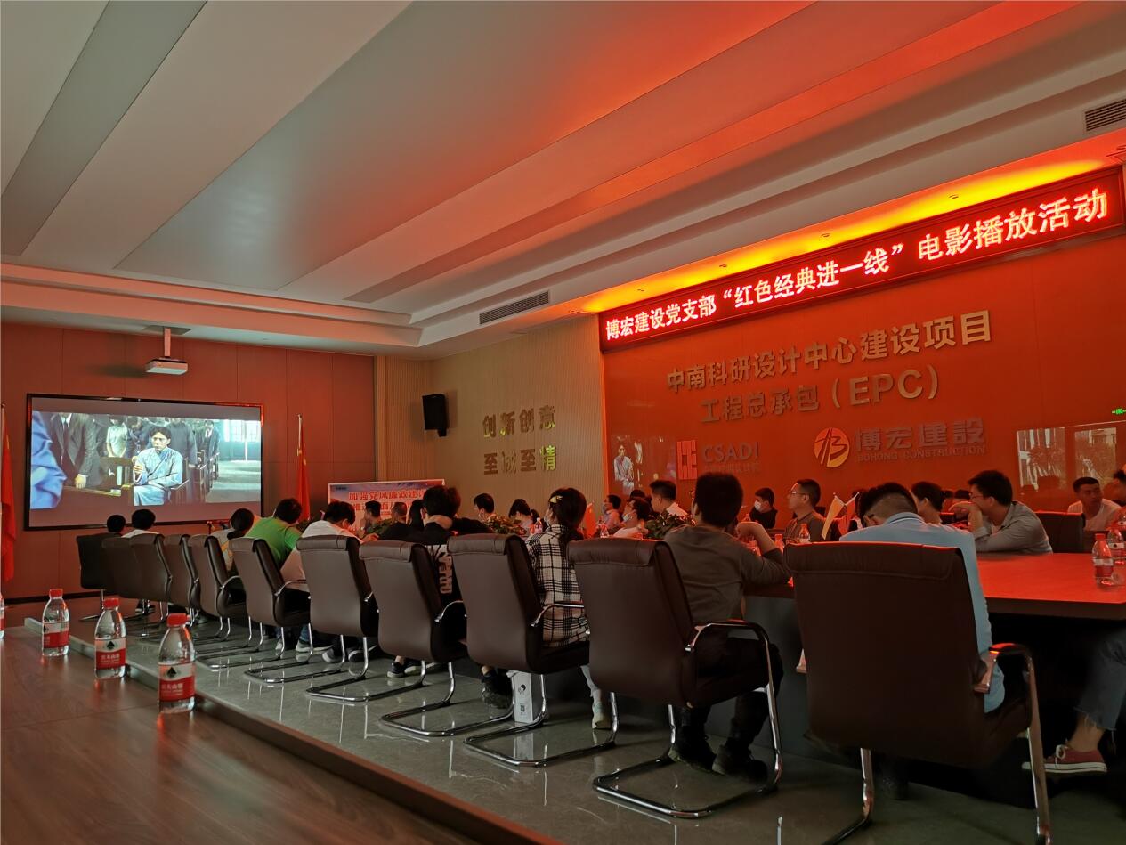 5月7日晚6點,漢陽市政博宏公司黨支部開展“建黨100年,光影映初心”電影播放活動,將紅色電影帶進公司中南科研設計中心項目部,50余位黨員群眾共同觀看“建國三部曲”系列電影之《建軍大業》,一起追憶紅色故事。