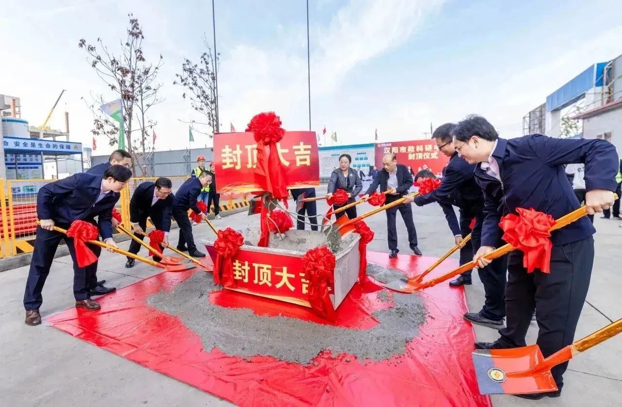 11點13分,嚴俊、王晟及漢陽市政集團、博宏建設集團等相關單位領導共同為項目澆筑最后一方混凝土,現場禮炮齊鳴,封頂儀式圓滿完成,標志著漢陽市政科研中心順利完成一個里程碑節點,現已進入新的建設階段。