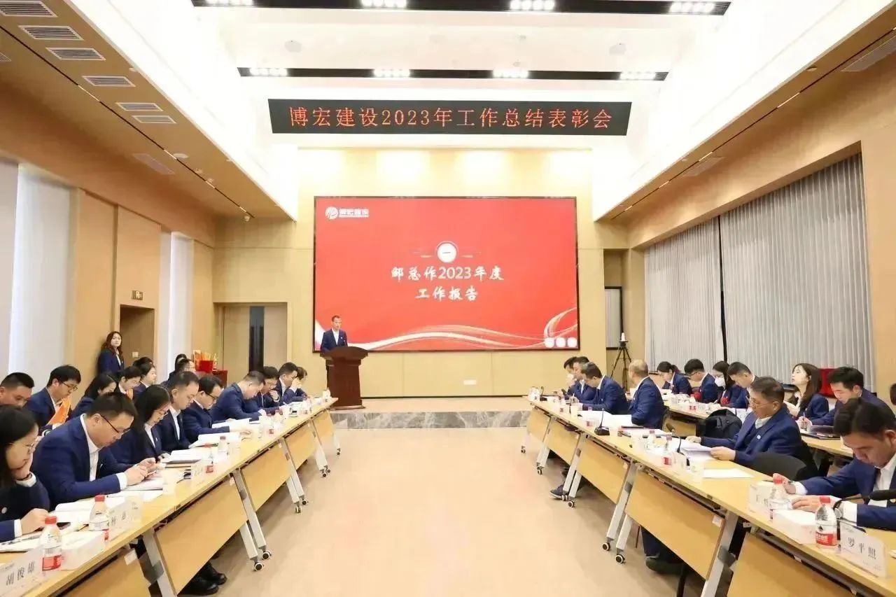 1月26日-27日,博宏建設2023年工作總結暨2024年工作研討會在公司31樓會議室隆重召開。公司黨委班子、部門負責人、項目經理和員工代表共84人參加會議。漢陽市政黨委書記、董事長嚴悌文受邀出席會議。會議由公司黨委副書記郭一清主持。