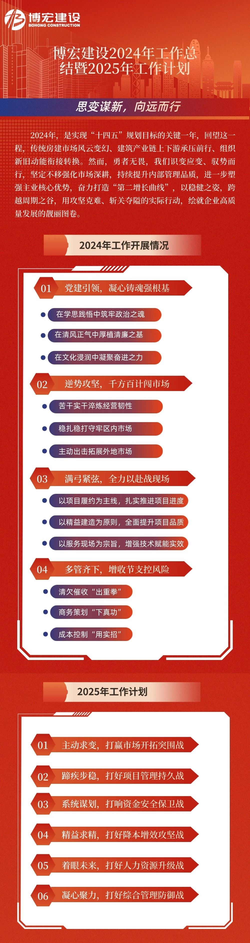 本次總結研討會是一次凝心聚力、互學互鑒、共謀發展的動員大會,會議緊貼市場方向,聚焦難點堵點,研討成果豐碩。站在新的起點,博宏建設將以更昂揚的爭先斗志、更蓬勃的奮斗激情,堅定戰略自信、落實發展舉措、勇擔職責使命,為實現2025年戰略目標不懈奮斗!